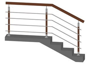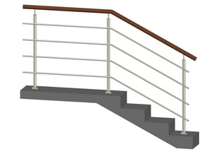 Лестничное ограждение без ригелей, стойки D38 мм., через 2 ступени, поручень D 38 мм. |