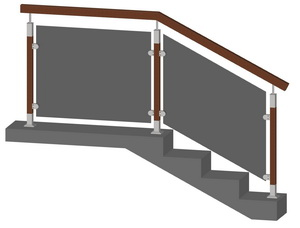 Прямоугольные комбинированные балясины, прямоугольный деревянный поручень, стекло стандартное |